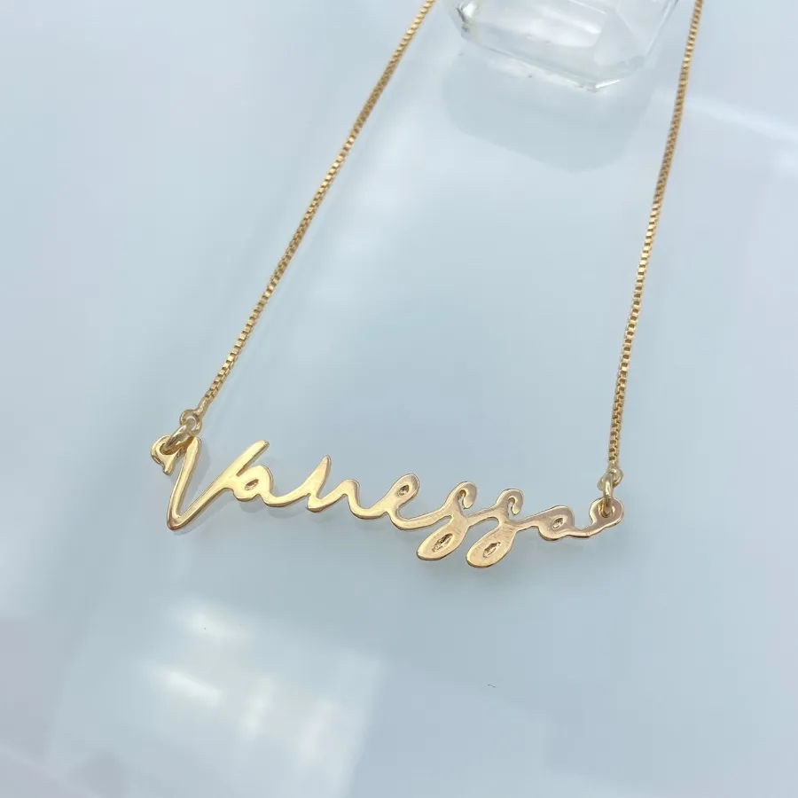 Colar Manuscrito, uma beleza de semijoia com seu nome escrito. Super delicado é um ótimo presente para qualquer ocasião, podendo escolher entre nomes ou palavras de até 10 letras.